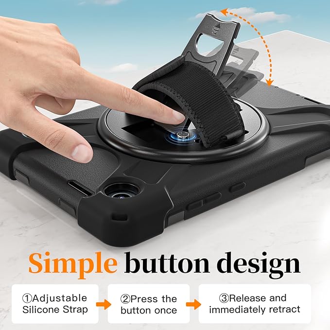 - 【360° Multi-Angle Viewing & Hands-Free Carry】 Features a sturdy 360° rotating kickstand for ideal viewing angles—whether for typing, watching, or video calls. The soft hand strap offers a secure grip, while the detachable shoulder strap allows for comfortable hands-free carrying indoors and outdoors.