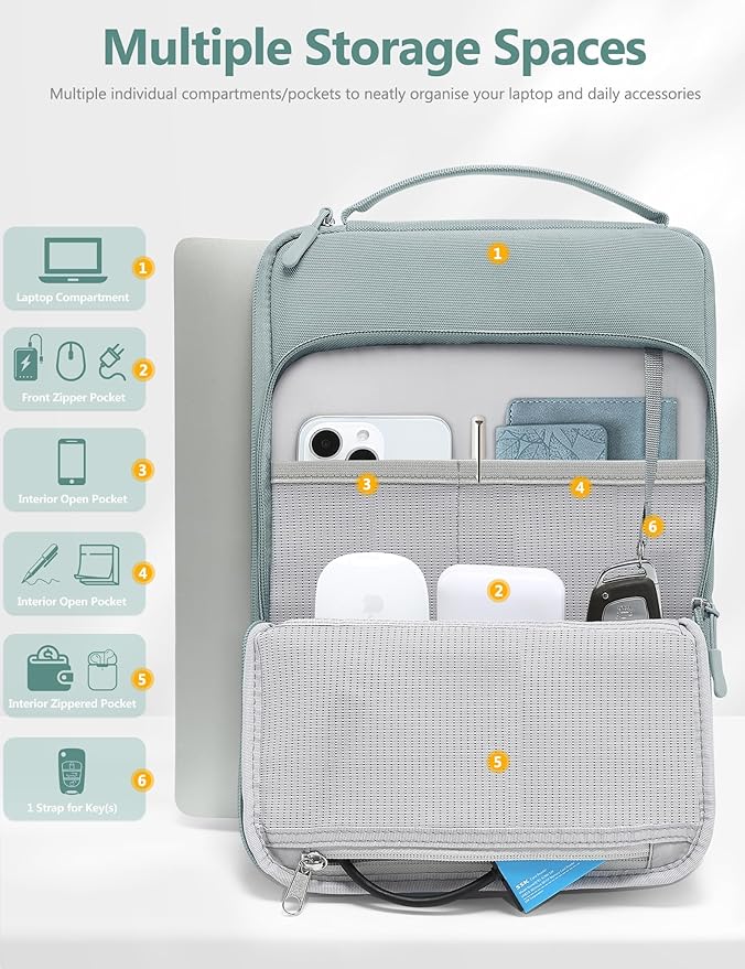 - Superior Multi-Protection: The outermost fabric is water-resistant and wear-resistant, the inner material is 8mm shockproof sponge and soft velvet, with an elasticated fixing strap to hold the laptop in place, perfectly protecting your laptop from spills/scratches/accidental drops. There is also a protective ridge around the perimeter to prevent your laptop from being scratched by zips