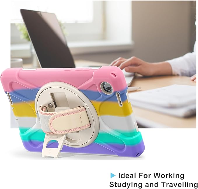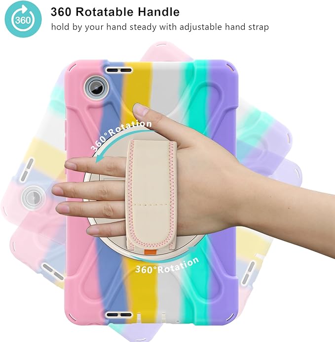 ProCase Rugged Case for Lenovo Tab One/K9 8.7 Inch 2025, Heavy Duty Shockproof Rugged Protective Cover Rotating Kickstand with Handle Holder Shoulder Strap for Lenovo Tab One/K9 -Colorful