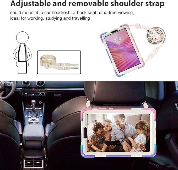 - Adjustable and removable shoulder strap provides you ultimate convenience for carrying around; You can even mount it to car headrest for back seat hand-free viewing, ideal for working, studying and travelling