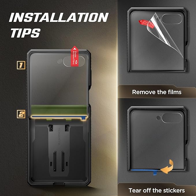 - [Hinge Protection Cover & Anti-slip Edge]: The case's rugged hinge cover with spring-assisted closure automatically covers the Z Flip 7 hinge to prevent dust and scratches. And anti-slip stripes act like tiny "speed bumps" for your fingers, enhancing grip on your phone to prevent slips and drops