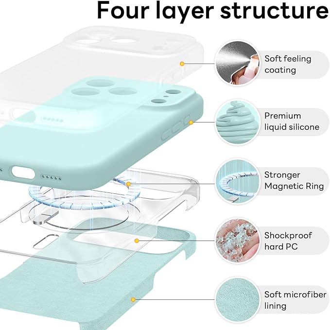 Vooii Magnetic Compatible with iPhone 17 Pro Case (Compatible with Magsafe) (Upgraded Camera Protection) Liquid Silicone Shockproof Full Body Protective Phone Cover for Women Men, Mint, 6.3”
