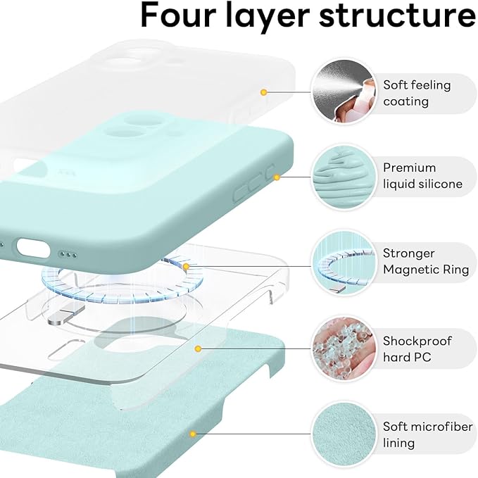 Vooii Magnetic Compatible with iPhone 17 Case (Compatible with Magsafe) (Upgraded Camera Protection) Liquid Silicone Shockproof Full Body Protective Phone Cover for Women Men, Mint, 6.3"
