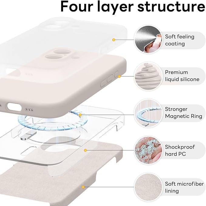 Vooii Magnetic Compatible with iPhone 17 Case (Compatible with Magsafe) (Upgraded Camera Protection) Liquid Silicone Shockproof Full Body Protective Phone Cover for Women Men, Stone, 6.3"