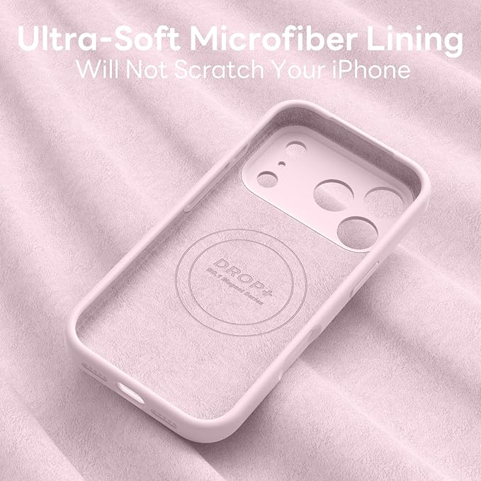 Vooii Magnetic Compatible with iPhone 17 Pro Case (Compatible with Magsafe) (Upgraded Camera Protection) Liquid Silicone Shockproof Full Body Protective Phone Cover for Women Men, Chalk Pink, 6.3”