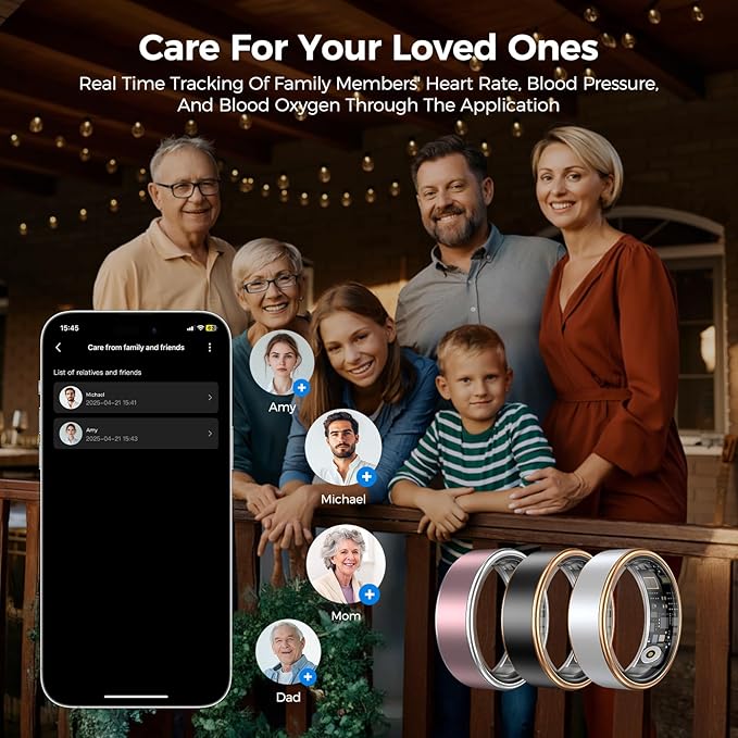 - Extra Smart Features – Remote Camera + Health Sharing: Use the Oucscru Smart Ring as a remote control for your phone camera—great for capturing group shots or selfies. With Friend Care Mode, you can securely share your health data with loved ones, making it an ideal feature for families and couples.