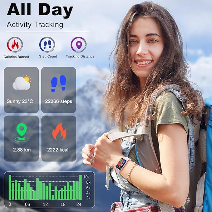 - 24/7 Health Monitoring: This activity tracker can track your heart rate, blood oxygen, blood pressure and stress levels with this advanced fitness tracker. Whether you're engaging in intense workouts, outdoor activities, or managing stress, this tracker provides real-time insights to help you improve your physical well-being. It also monitors your sleep quality, offering personalized recommendations for better rest