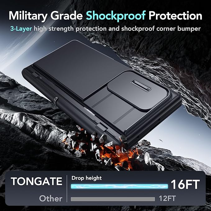 - [360°Military Heavy Duty Drop Protection] This Galaxy Z Fold 7 case consists of a durable hard PC back cover and a wear-resistant TPU shock absorbing bumper frame, with a dual-layer shockproof and rugged construction that can can perfectly protect your phone from heavy drops and collisions. The 2mm raised screen edges and camera slider resist high strength impacts and wear and tear, providing strong protection for your Galaxy Z Fold 7