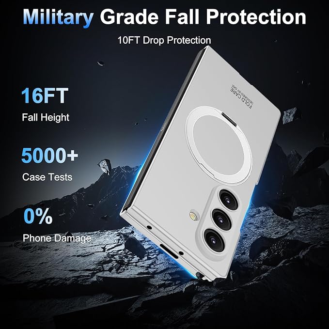 - 【Powerful Magnetic Clasp】This case for Samsung Galaxy Z Fold 7 is compatible with MagSafe and has a built-in second-generation magnetic ring with 30% stronger magnetic force and a holding force of up to 18N. Even if the Z Fold 7 itself does not support magnets, you can still enjoy stable wireless charging and secure locking on the magnetic car mount - it can be easily adsorbed wherever there is iron, and it will not slip or be misplaced.