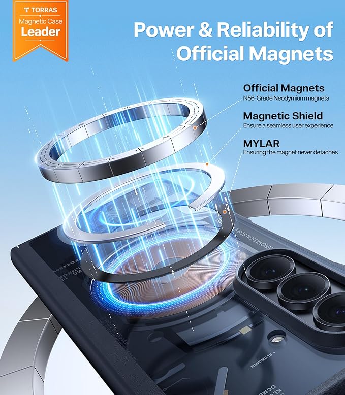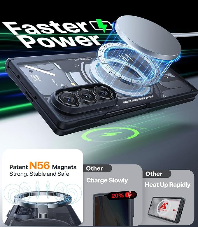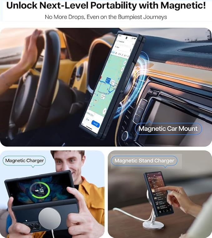 - [Pioneering Super-Strong Magnets] This premium magnetic Galaxy Z Fold 7 case features military-grade N56SH neodymium magnets and MegaMag technology, delivering 18N of ultra-strong magnetic force. Your Z Fold 7 doesn't have built-in magnets? No problem! This innovative Z Fold 7 case instantly transforms your phone to work flawlessly with Magnetic chargers, car mounts and so on. Experience the strongest magnetic hold - More powerful than standard cases.