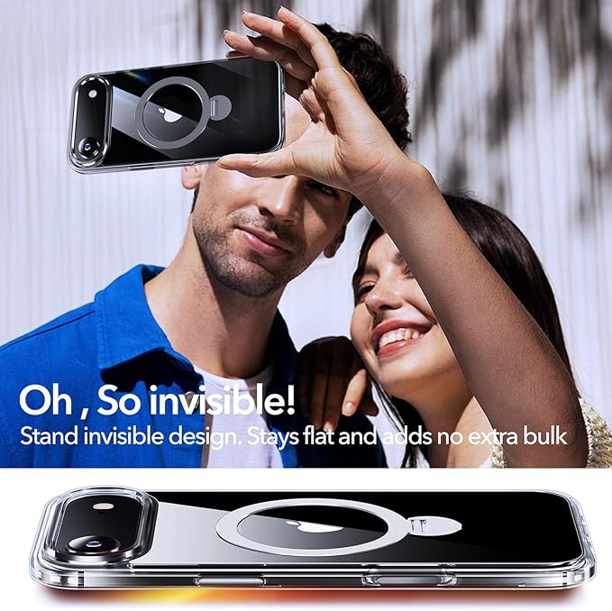 - [360° ALL-in-ONE Rotating Stand, Ring Holder, and Magneitc Charging] It’s everything you need, without the excess. This clear magnetic iPhone 17 air phone case with stand ring effortlessly blends style and function. The 360° magnetic rotatable ring holder stays hidden when not in use — keeping the silhouette clean and minimal. When opened, it folds into a stable triangle stand, ready for hands-free moments on any surface. The ring holder fits naturally in your hand, offering a comfortable grip or an extra hook when life gets busy