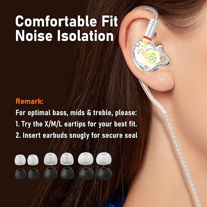 - COMFORTABLE FIT & NOISE ISOLATION - Ergonomically designed to fit the ear canal, Vibes 202ML IEM headphones feature preformed over-ear earhooks for a secure fit and keep cables out of the way. With 6 pairs of soft, breathable eartips (in 2 colors and 3 sizes), they ensure optimal comfort and stability while effectively blocking ambient noise for immersive listening.