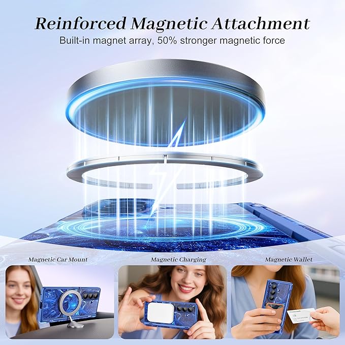 - Upgrade Magnetic Strength: Featuring an integrated ultra-powerful magnetic ring (15X stronger than standard cases), this Z Fold 7 case delivers industrial-grade attachment security for all MagSafe-compatible accessories; Enjoy a steadfast connection with magnetic wallets, car mounts, wireless chargers, zero-slip guaranteed during daily use or travel. Maintains full compatibility with Qi wireless charging. Note: Due to hinge design, some accessories may not charge when your phone is fully opened