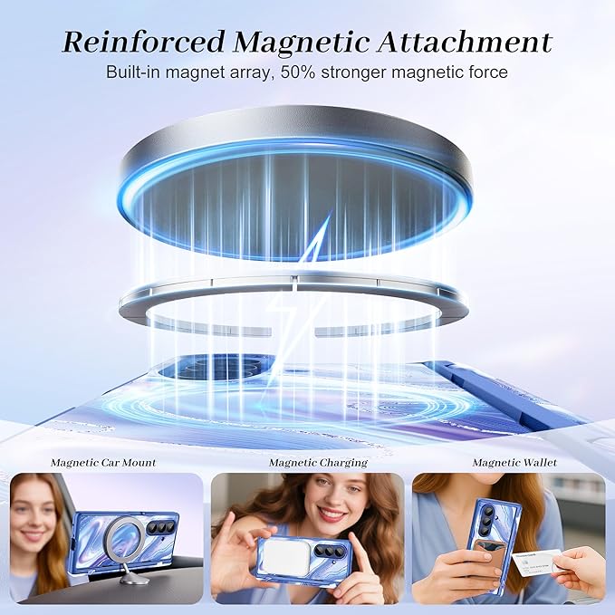 - Upgrade Magnetic Strength: Featuring an integrated ultra-powerful magnetic ring (15X stronger than standard cases), this Z Fold 7 case delivers industrial-grade attachment security for all MagSafe-compatible accessories; Enjoy a steadfast connection with magnetic wallets, car mounts, wireless chargers, zero-slip guaranteed during daily use or travel. Maintains full compatibility with Qi wireless charging. Note: Due to hinge design, some accessories may not charge when your phone is fully opened