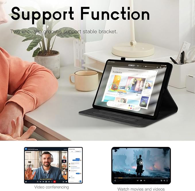 - Multi-angle stand: With the lenovo m11 tablet case, you can hold video conferences or watch videos anytime, anywhere while keeping your hands free. Offers two adjustable angles, making it perfect for office, home, and travel.