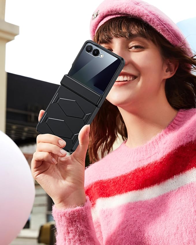 - Full Hinge Protection: The Galaxy Z Flip 7 case features an innovative one-piece anti-shock hinge protection desagn, so you don't have to worry about sliding up and down and separating. The raised edge protection design provides full coverage of the screen and camera in the event of a drop, with built-in safety shock pads, enhanced textured edges and grip lines to give you a better grip on your phone and prevent it from falling