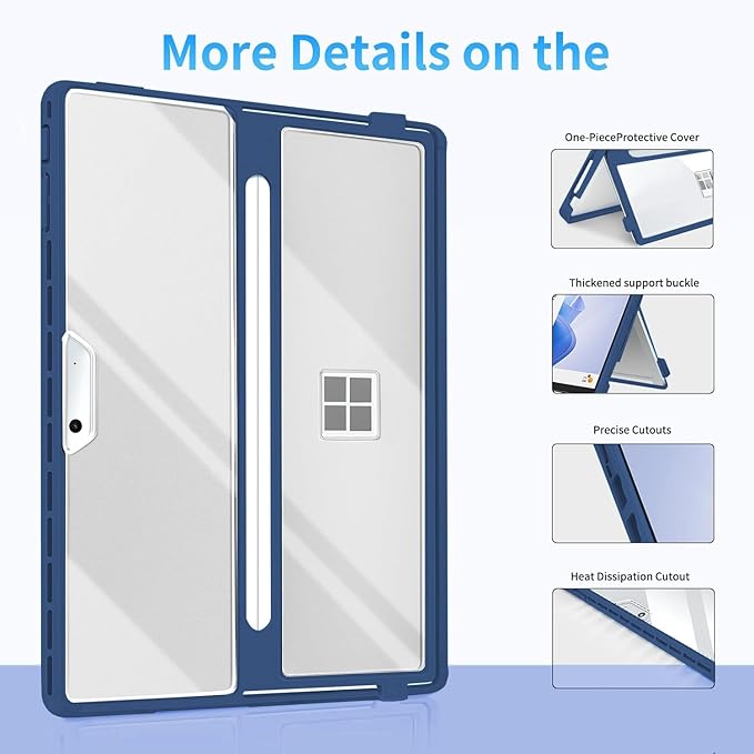 Case Updated Version fit Microsoft Surface Pro 11/10 /9/8 13-Inch, All-in-one Rugged Case Compatible with Type Cover Keyboards, Transparent&Navy Blue