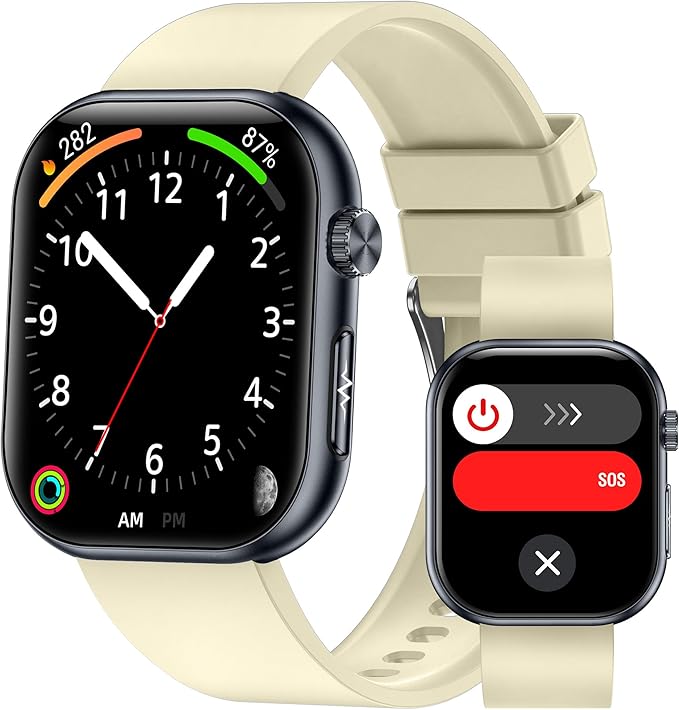 - 【Bluetooth 5.3 Call, Message Reminder and Voice Assistant】The phone watch uses Bluetooth 5.3 technology to provide faster and more stable connections. The built-in microphone and Hi-Fi speaker effectively reduce background noise to ensure clear calls. Vibration reminders for text messages and social media notifications (Facebook, WhatsApp, Twitter), large screen clear display. Easily operate everything through voice commands.