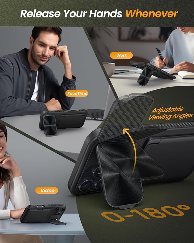 - ✅[FIND YOUR PERFECT ANGLE, EASILY] SIXBOX innovative phone case for iPhone 17 Pro Max isn't just armor for your precious device, it's a game-changer for how you use your phone every day. Our case for iPhone 17 Pro Max comes with camera cover stand rotates smoothly from 0° to 180°. Find your perfect viewing angle in an instant – whether you're binge-watching shows landscape-style, video chatting portrait-style, following recipes, or capturing group photos. Rock-solid stability means no wobbles, just pure enjoyment. Sleek aesthetics meet powerful functionality, elevate your iPhone 17 Pro Max experience. This is more than a case, it's your key to a smarter, more convenient mobile lifestyle