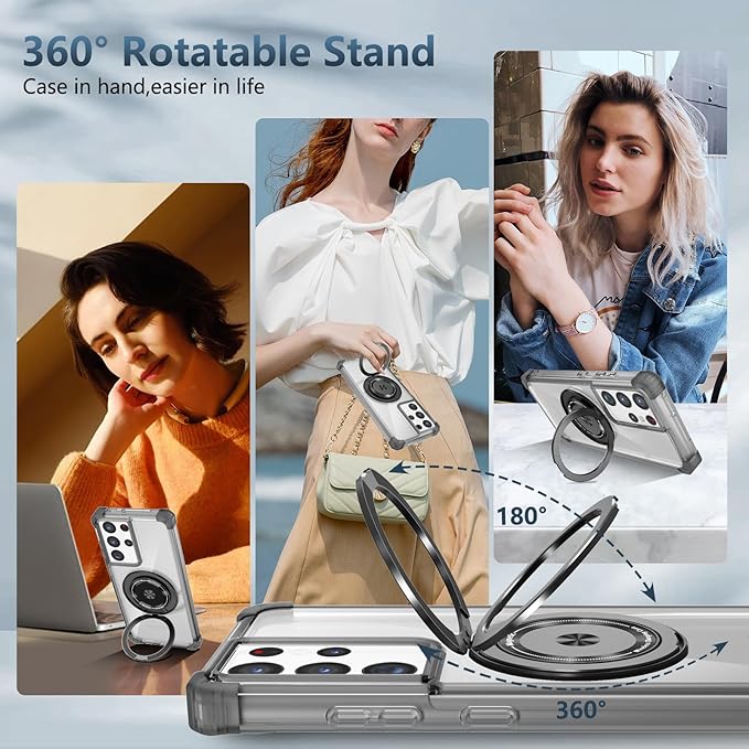 for Samsung Galaxy S21 Ultra Case Magnetic Compatible with MagSafe Wireless Charging,for S21 Ultra Case Built-in Kickstand Ring,with Screen Protector Military Grade Protection Shockproof Black