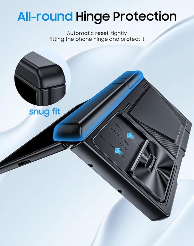 - Sliding Lens Protective Cover: This Galaxy Z Fold 7 case built in sliding camera lens cover. The newly designed sliding camera cover has a more sensitive slide rail and a safer lock than previous versions. The grinding mark on the lens cover and the raised side design allow you to slide the lens cover more easily. When you don't need to use the camera, you can fully cover the camera lens with just one second to protect your Galaxy Z Fold 7 phone lens from scratches and damage.