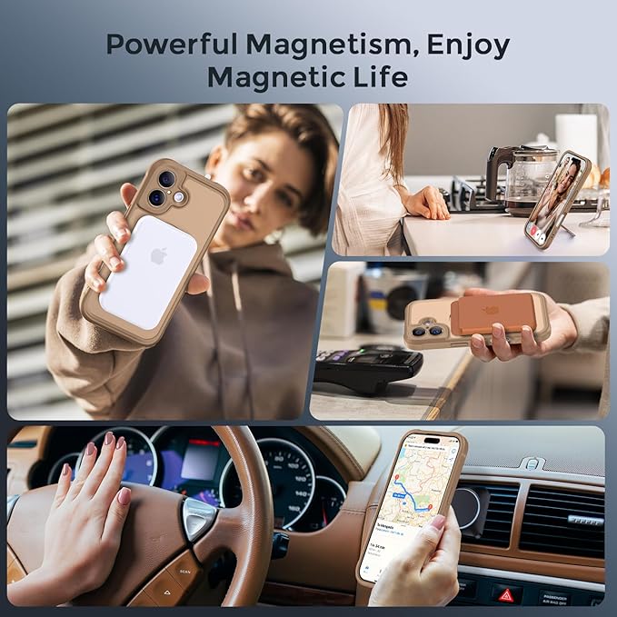 - 【Perfectly Compatible with Magsafe Accessories】MOCCA iPhone 17 Case with Magnetic Stand, the super strong 20N magnetic suction not only seamlessly compatible with Magsafe accessories for wallets, chargers, car mounts, etc., to meet the needs of different scenarios of use, but also provides up to 25W charging speed, with almost 0% power consumption(Warmly tips: the phone with Camera lens film may not be applicable, may need to remove it before using our case)