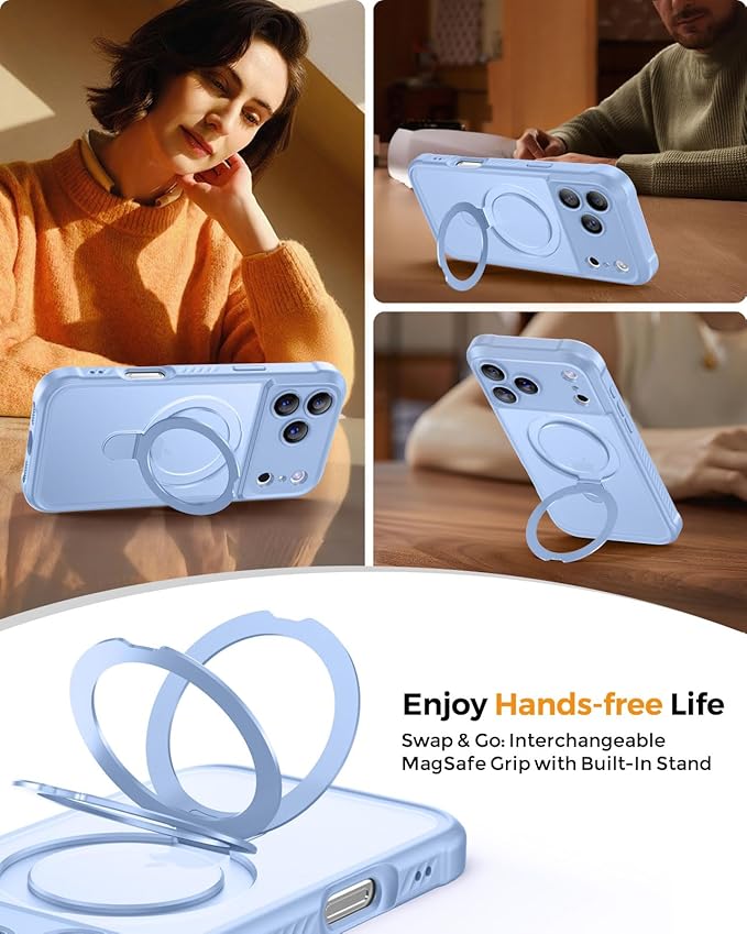 - 【Relax Your Hands, Enjoy Every Moment】The iPhone 17 Pro Max Phone case features an innovative invisible stand design with a built-in N52+ magnetic aluminum alloy stand, which can be adjusted from 40°to 120°according to your needs, freeing up your hands while enjoying a convenient movie watching experience and making life easier. The multifunctional stand on the back folds back into the groove when not in use