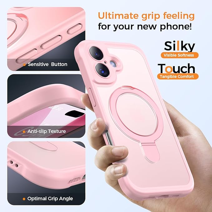 MOCCA Compatible with iPhone 17 Case with Magnetic Invisible Stand [Full Camera Protection] [Compatible with Magsafe] Military Drop Shockproof Translucent Matte Phone Case Cover 6.3",Pink