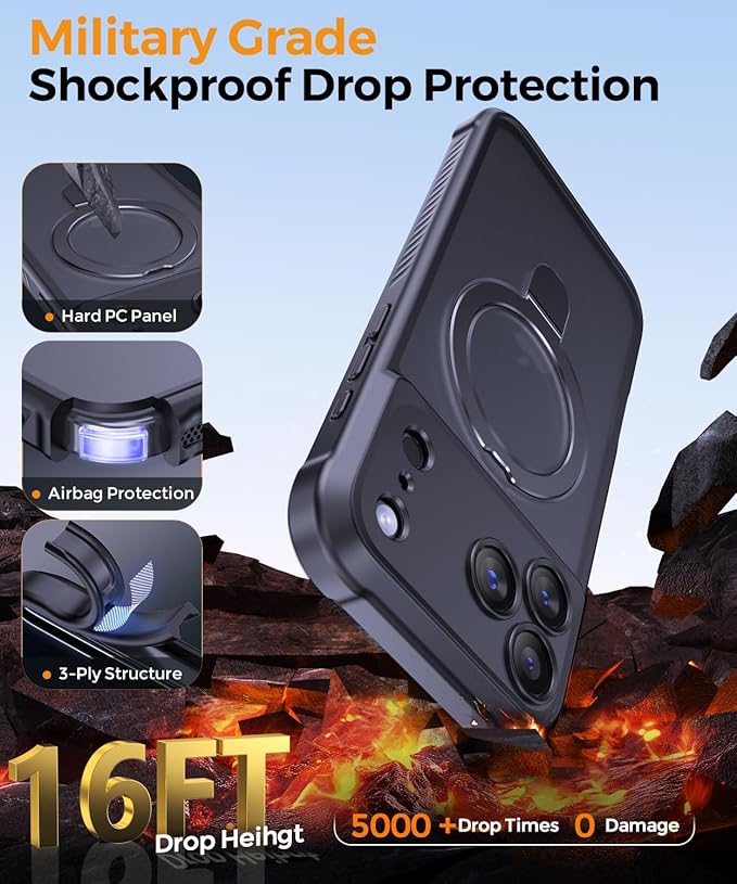- 【Military-grade drop Protection and full Camera lens protection】Advanced military-grade drop test design, reinforced and thickened four corners can effectively resist all kinds of accidental drops and collisions in daily use, and the full camera lens coverage better protects your lens from scratches and impacts. Whether you are carrying it daily or using it outdoors, it will give you more peace of mind