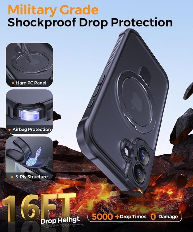 - 【Military-grade drop Protection and full Camera lens protection】Advanced military-grade drop test design, reinforced and thickened four corners can effectively resist all kinds of accidental drops and collisions in daily use, and the full camera lens coverage better protects your lens from scratches and impacts. Whether you are carrying it daily or using it outdoors, it will give you more peace of mind