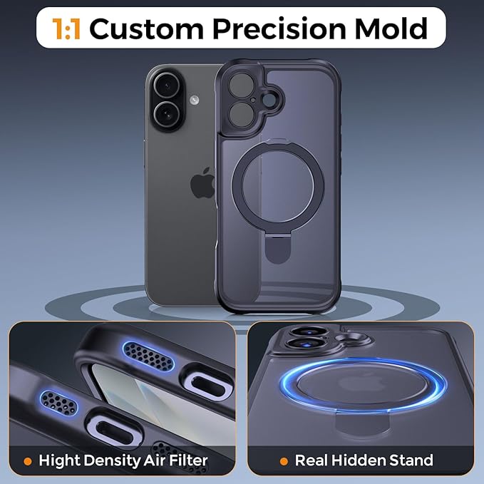- 【Relax Your Hands, Enjoy Every Moment】The iPhone 17 Phone case features an innovative invisible stand design with a built-in N52+ magnetic aluminum alloy stand, which can be adjusted from 40°to 120°according to your needs, freeing up your hands while enjoying a convenient movie watching experience and making life easier. The multifunctional stand on the back folds back into the groove when not in use