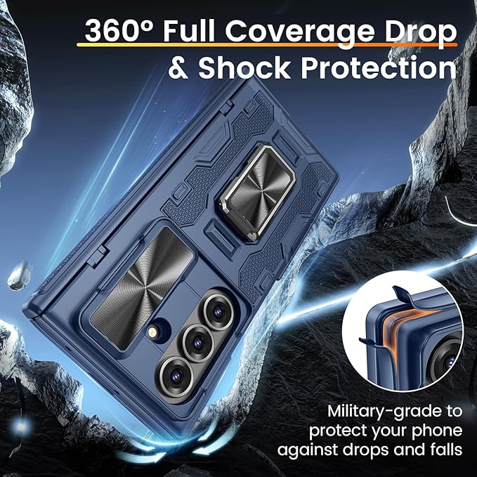 - [Z Fold 7 Case Full Protection] This Samsung Fold 7 case with slide camera cover, you can easily slide the lens cover left and right to protect the camera lens. And the new hinge protection with a non-slip textured design can offer great hand grip and anti-slip. 360ยฐ fully protecting the phone from shock and drop