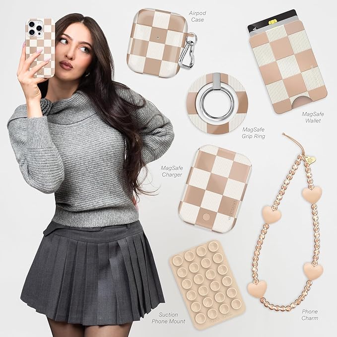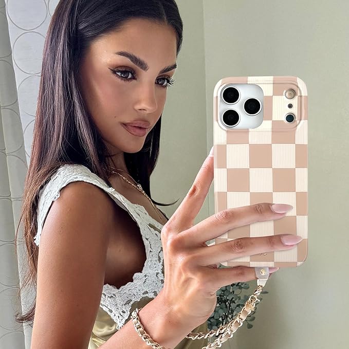 VELVET CAVIAR Case for iPhone 17 Pro | Compatible with MagSafe | 10ft Drop Tested | Protective Designer Cases | Nude Vibe Checkered