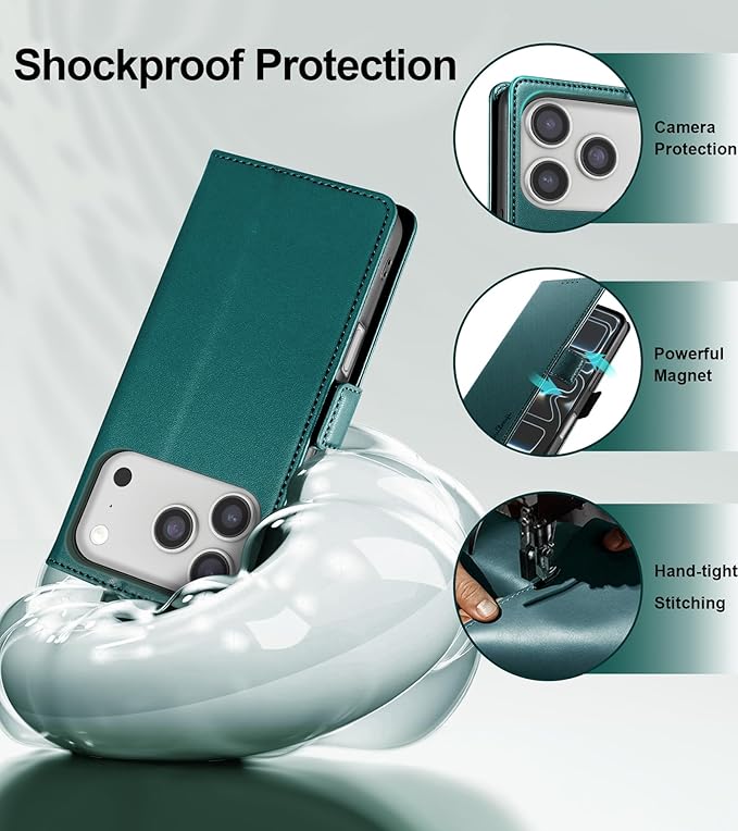 - 【Compatible with iPhone 17 Pro 5G】:This Leather wallet case fits perfectly on the corresponding phone's sensors, buttons and camera. Sensitive keys, smooth fingerprint unlock, clear earpiece. Please make sure your phone is iPhone 17 Pro 5G before purchase.