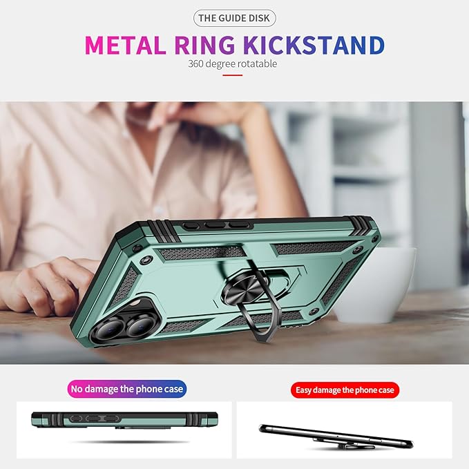 ADDIT Compatible with iPhone 17 Case with Tempered Glass Screen Protector, Adjustable Kickstand Ring, Military-Grade Heavy Duty Protection, Shockproof, Anti-Fingerprint,Teal