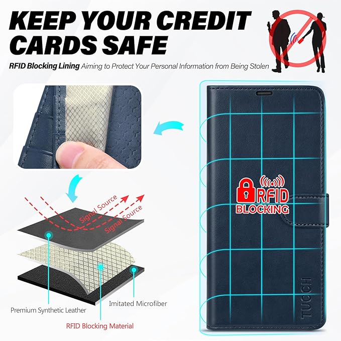 TUCCH Compatible with Galaxy S25 FE Wallet Case with 4 Card Holder, Stand RFID Blocking, Magnetic PU Leather Protective [TPU Shockproof Interior Shell] Flip Cover (6.7") 2025 5G, Dark Blue