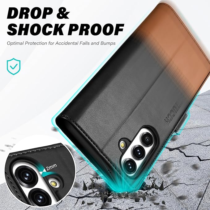 - RFID Blocking & Full Protection: RFID blocking technology application effectively shields the signals and keeps your information safe. The Galaxy S25 FE 6.7" flip wallet leather case can cover all corners and provide great dual-layer protection to your smartphone. The durable soft TPU full-body inner shell comes with a shockproof edge and ensures your phone is protected against drops and bumps