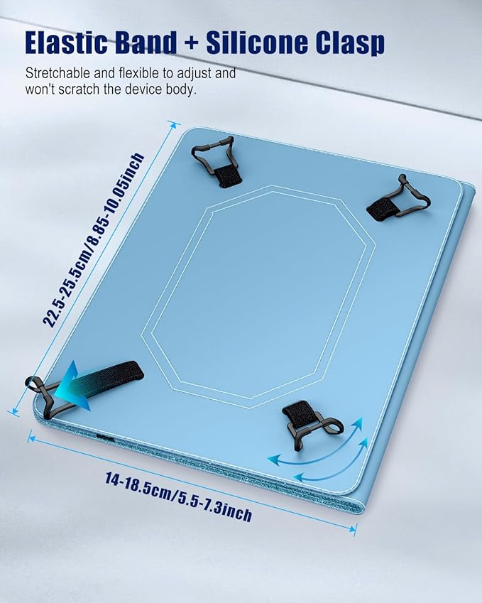 - Premium Material: Built from premium PU leather exterior cover, soft microfiber interior lining design provide great protection. The tension clamps at the four corners can be adjusted to the appropriate position to hold the device securely