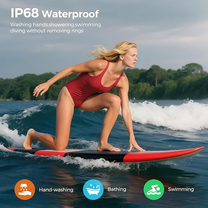 - Ultra-Long Battery + Portable Charging Case: A full charge of 1–2 hours provides 3–5 days of usage. The included 400mAh charging case can recharge the ring up to 15 times, giving you up to 60 days of usage without needing to plug in—perfect for frequent travelers or busy lifestyles.