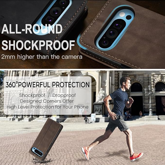 for Google Pixel 10 Pro XL/Pixel 9 Pro XL Case, Flip Wallet Leather Case with Card Holder Magnetic Closure Shockproof Kickstand Protective Phone Cases Cover, Coffee
