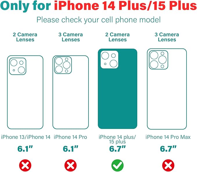 - 【Compatibility】This case is only for iPhone 14 Plus & iPhone 15 Plus, please check your phone model match when you purchase, if you have any questions please contact us on Amazon