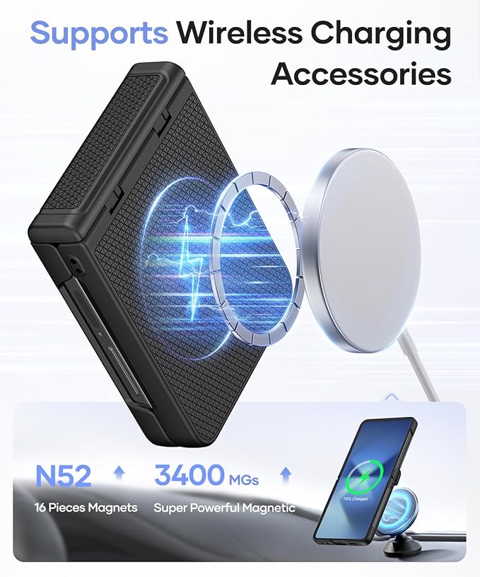 - 【Powerful Magnet】Vihibii for Galaxy Z Flip 7 phone case is built-in strong N52 magnets, which are arranged tightly to form a magnetic ring, perfectly compatible with MagSafe accessories, and enjoy the safe and stable charging experience. With its powerful magnetic force, your phone can be effortlessly attached to any magnetic accessory, such as a car mount, wireless charger, etc