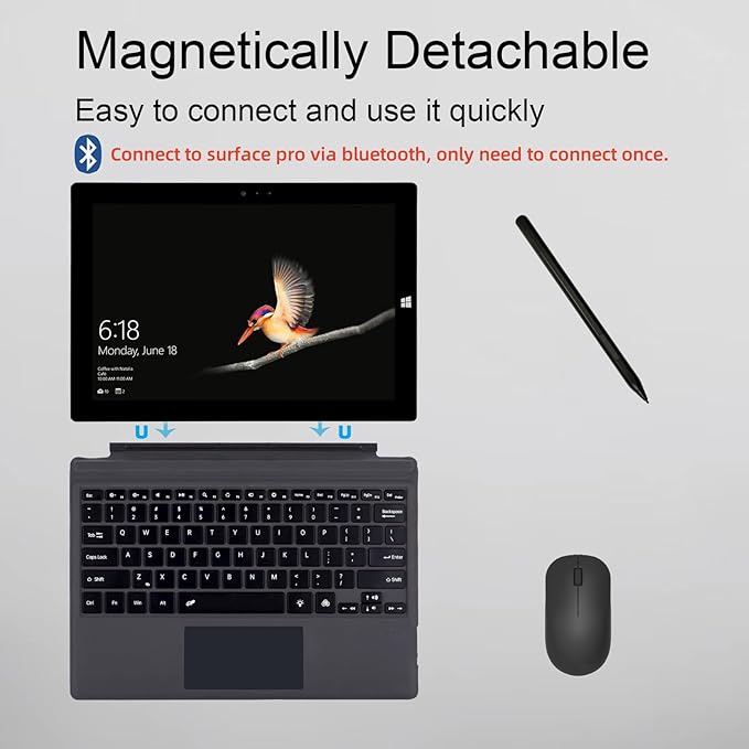 - Magnetically Detachable - Removable attach or detach, easily switch between surface pro tablet and laptop. The slim design of the keyboard makes it easy to carry with you wherever you go.