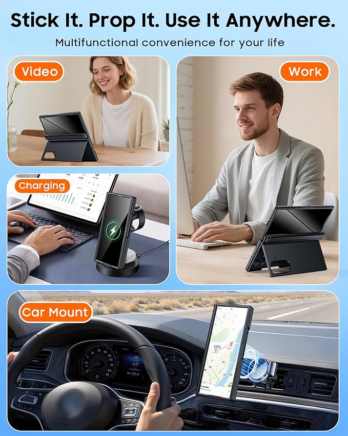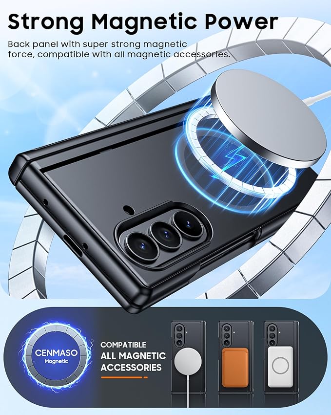 - 【Strong Magnetic & Wireless Charging】The Z Fold 7 case is compatible with different magnetic accessories and has strong magnets built in, allowing it to withstand 18N gravity.The magnetic suction power is up to 2000gf, no need to worry about your magnetic power bank, wallet suddenly dropping during use . Suitable for a variety of scenarios, For example, driving, office, movie party, very portable. It supports wireless charging, allowing for portable high-speed charging without removing the phone case.
