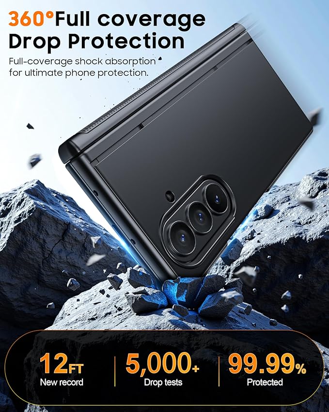 - 【Military Grade Drop Protection & Screen Protector】This Samsung Fold 7 case with screen protector is made of rugged polycarbonate and has withstood 5,000+ drop tests. The Fold 7 case has a built-in 9H HD tempered glass screen protector to protect the phone screen from scratches and breakage, and still brings a smooth touch experience like a bare screen.With an Upgraded frame lowering design, the side slides more naturally, maintaining the original screen sensitivity.With a 2.5mm raised edge around the camera lens and a 2.0mm raised edge around the screen, triple protection provides you with shock, scratch, and drop resistance. Avoid some minor accidents with your phone.