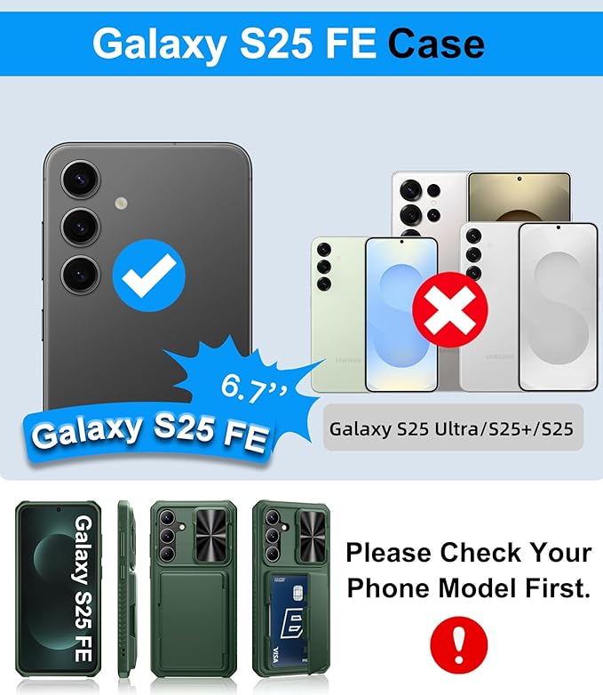 - 【Compatibility: Designed Exclusively for Samsung Galaxy S25 FE】This wallet case is ONLY compatible with Galaxy S25 FE 5G (6.7-inch, 2025 release). Please note: ①To confirm your device model, go to: Settings → General → About → Model Name. Please double-check your model before ordering. ②It is NOT compatible with Samsung Galaxy S25/S25+/S25 Ultra, or any previous models. ③This case does NOT support wireless charging