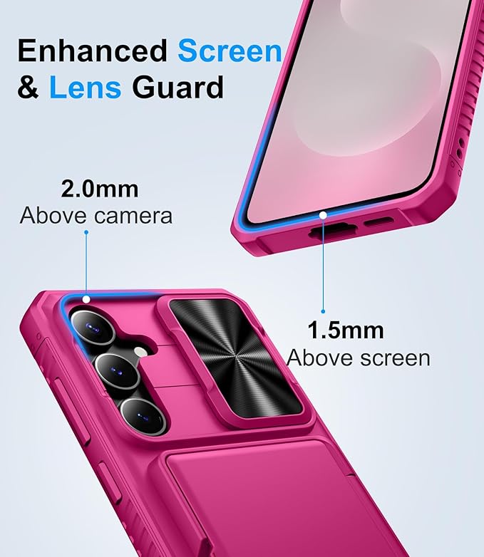 - 【Slide to Protect Your Lens & Privacy! Innovative Camera Cover】Featuring a smooth sliding camera cover and 2mm raised edges, the BXYJY Samsung Galaxy S25 FE case with Card Holder delivers complete lens protection against dust, scratches, drops, and unauthorized access. Keep your camera lens safe and your privacy intact wherever you go