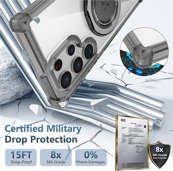 - MILITARY GRADE DROP PROTECTION : Drop-tested to military standards, the extra raised edge is equipped with 360° all-round airbags and 4 corners, which can effectively absorb and disperse impact, maximizing protection against drops, bumps and scratches.The for Samsung Galaxy S22 Ultra cases have been tested thousands of times throughout the design and manufacturing process