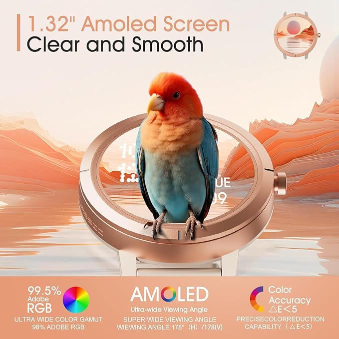 Ultra-high Precision GPS Smart Watches for Women Men, 1.32'' Amoled Screen & 24/7 Heart Rate/Health Fitness Watch, 170+ Sports Modes | 5ATM Waterproof | Compatible Android iOS