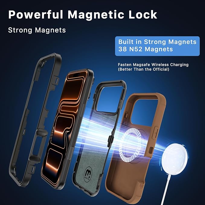 - Ultimate Magnetic Attraction: Specifically Tailored for iPhone 17 Pro Case, This Case Built-in 38 Enhanced N52 Magnets, Guaranteeing Effortless Alignment and Flawless Compatibility with MagSafe Magnetic Accessories.